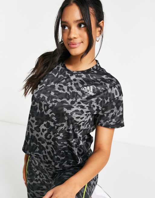 Adidas Running Leopard Print T Shirt In Grey Asos